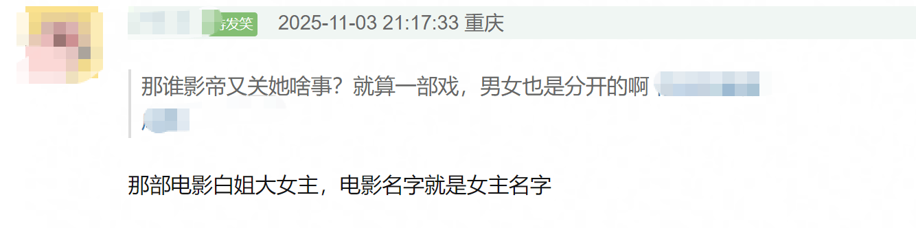 网友对此展开了激烈讨论,有网友直言男女主同时拿奖的可能性太小,除非是大爆的作品,还有网友觉得电影的名字就是女主角的名字,如果一部女性电影男主角拿奖,实属打脸女演员了。