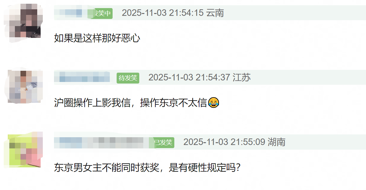 还有网友觉得沪圈没那么大本事,能够操作东京国际电影节,更多网友则认为无论得不得奖,不给女演员撕奖,都令人觉得格局太小。