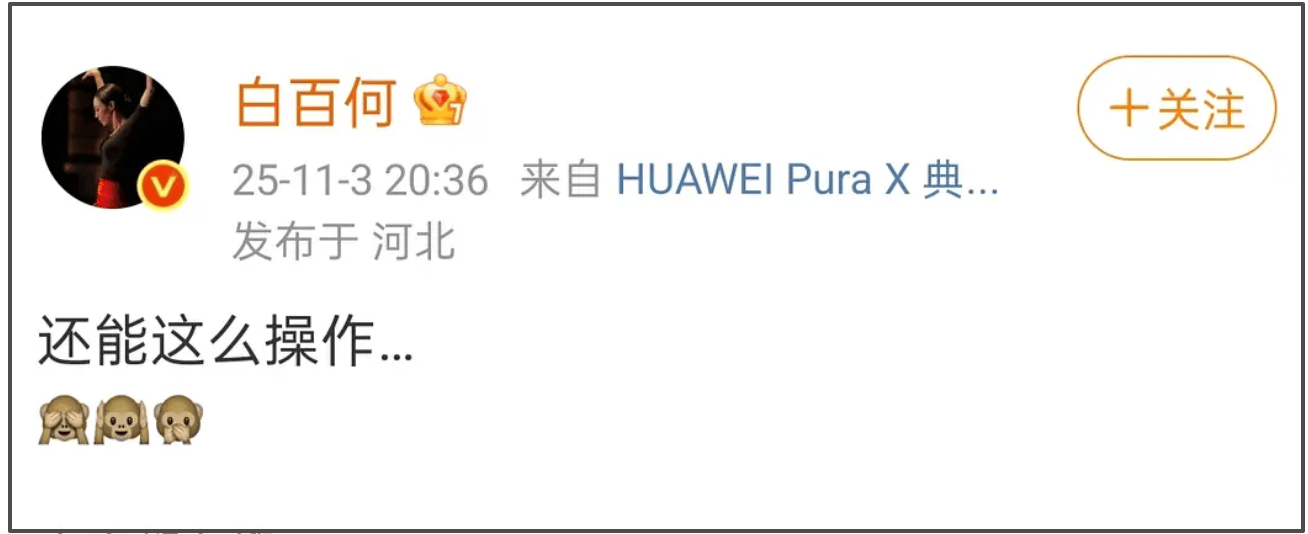 白百何还配了三个表情包,分别是捂眼、捂耳朵、捂嘴,暗示有人闭眼吹。随后评论区火速开启猜瓜模式,询问白百何怎么了。